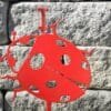 14GA steel with a 3/8 inch square steel stake. Has a durable red powder coat finish.