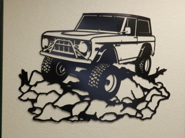 An original design, plasma cut from heavy gauge steel – 24 inches tall by 33 inches wide, shown in a textured black powder coat finish.