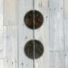 A pair of decorative hinges for a garden gate or shed with a unique sunflower design.